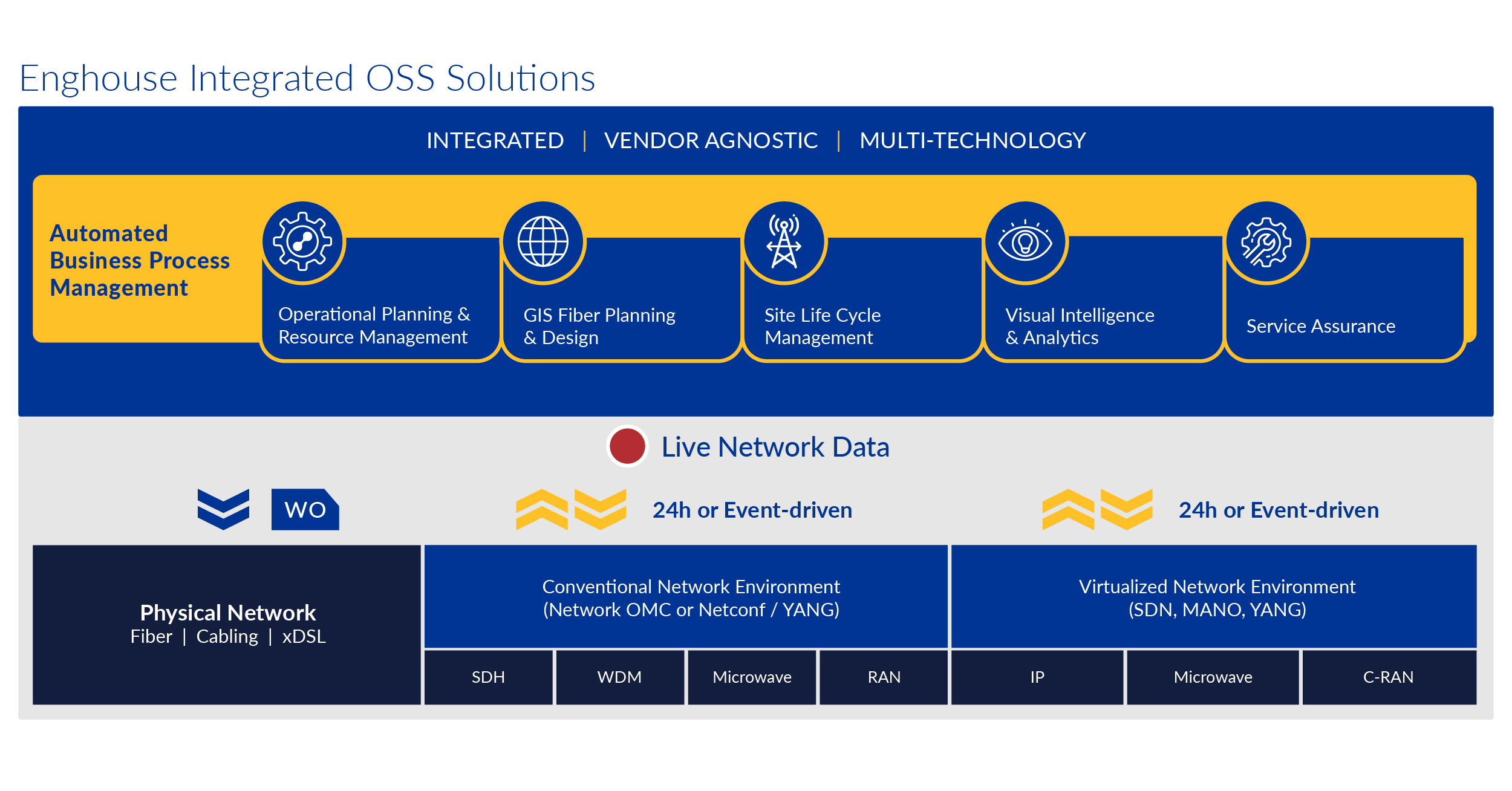 Wider availability of high-speed internet access not only improves education and training, better access to digital talent, and innovation incentives, 5G networks also offer access to affordable cloud services that support new service creation and increase cost efficiencies for rural businesses. By investing in an end-to-end integrated OSS system, operators can meet the increase in demand for bandwidth, reliability, low latency, and FTTx services that rural American businesses crave and deserve.